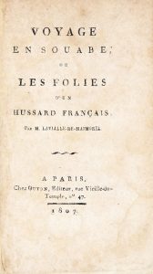 LAVIALLE-DE-MASMOREL (M.). Voyage en Souabe, ou les folies d'un hussard français. A Paris, chez Guyon, 1807, in-12, demi-veau vert à coins, dos lisse orné de fleurons dorés (reliure de l'époque).
