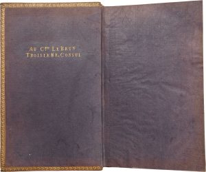 Bel exemplaire offert à LeBrun, Troisième Consul avec la dédicace suivante placée sur le contreplat intérieur en lettres dorées : Au Cen LeBrun, Troisème, Consul. Lebrun devint prince et architrésorier de l'Empire en 1804, duc de Plaisance en 1806. Fine reliure de Bradel (étiquette). Accroc à la coiffe supérieure.