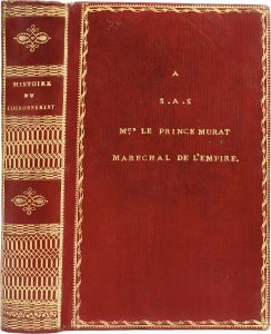 Exemplaire offert à Murat A S. A. S. Mgr le Prince Murat, Maréchal de l’Empire, frappées en lettres dorées au centre du premier plat.