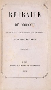 PAIXHANS (Général). Retraite de Moscou. Notes écrites au quartier général de l'Empereur. Metz, Maline, 1868, in-8, demi-chagrin rouge, dos à nerfs, couverture conservée (reliure moderne).