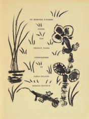 édItIoN orIGINAle. « ce grand poème en vers et en prose, formé de 4 parties, fut écrit par tzara entre 1946 et 1949 et représente, en quelque sorte, la somme de son expérience poétique » (S. Goeppert - H. Goeppert-Franck - P. cramer, Pablo Picasso. Catalogue raisonné des livres illustrés, p. 162). 9 lithographies originales de Pablo Picasso (1881-1973), à pleine page. « the verve of these lithographs is due to the ease and freedom with which they were drawn. Picasso varied his use of the lithographic crayon by adding loose swirling strokes of his finger » (the artist & the Book, p. 158). l’un des 20 exemplaires hors commerce, sur alfa mousse  ; celui-ci est enrichi d’un envoi autographe signé de l’auteur à claude roy, daté du 26 février 1951. édition limitée à 350 exemplaires. dimensions : 330 x 258 mm. Provenance : claude roy (1915-1997), écrivain, poète et critique français. S. Goeppert - H. Goeppert-Franck - P. cramer, Pablo Picasso. Catalogue raisonné des livres illustrés, n°  59, p. 162  ; […]. Museum of fine arts, Boston. the artist & the Book, 1860-1960, n° 234, p. 158.