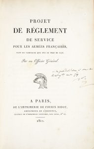 [PREVAL (Vicomte de). Projet de règlement de service pour les armées françaises, tant en campagne que sur le pied de paix. Par un officier général. Paris, Firmin Didot, 1812, in-8, demi-maroquin rouge, dos lisse orné (reliure de l'époque).