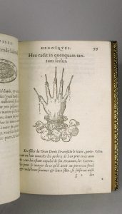 coupes. Tranches dorées. Roulette intérieure. [Capé]. 261 pp. [a-q8 ; r3. (manque le dernier f. . bl.). Deuxième édition, en partie originale, de cet important livre d'emblèmes, enrichie de 64 nouveaux emblèmes par rapport à l'édition publiée en 1551 par les mêmes imprimeurs-libraires. Cachet Peiresc sur le titre. Les feuillets d5 et q5 sont fautivement signés c5 et p5. Infime décoloration en tête du 1° plat. Exemplaire lavé. [Brunet, IV, 358]. On lit sur la garde la note suivante de Nodier : « Ce joli exemplaire contient deux transpositions : les signatures A,B,C,D de la suite de l'adolesence de Clémentine devait être placées au devant de la page xxxiii des Elégies. L'Eglogue placé entre les ff.viii et ix de l'Histoire de Leander et Heroe devrait se trouver auparavant. Je n'ai pas cru que ce défaut méritât le sacrifice d'une des plus élégantes reliures de Duseuille (sic) le volume est d'ailleurs d'une conservation admirable et d'une édition fort rare et elle a échappé aux recherches de Messieurs Adry et Brunet. [Tchemerzine IV-492 : « Edition très complète et fort rare, imprimée en petites lettres rondes, ornée des vignettes sur bois de l'édition Denys Janot 1538, C'est la première édition collective qui contienne l'histoire de Léander et Hero qui avait paru l'année précédente en édition séparée.