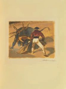 Deluermoz (H.) - montherlant (H. de). les Bestiaires. [Paris], Les Bibliophiles franco-suisses, 1932, in-4°, maroquin rouge brique, sur le premier plat, titre mosaïqué de maroquin noir avec tête de taureau frappé à froid, sur les plats encadrement