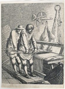 restauré).— [VAN VLIET, Jan].- Les tondeurs de drap dans l'atelier. TC 21 x 16 cm. ▲ Provenance : Gaston de Ramaix (cachet; # Lugt 4099).