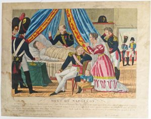Portraits en pied ou à cheval (3), "Les relevailles de couche de S.M. l'Impératrice Marie Louise, sa promenade [...] avec S.M. l'Empereur au château des Tuileries", Napoléon et la "mère du grenadier", les Adieux de Fontainebleau, l'île de Sainte-Hélène, la mort de Napoléon, la translation de ses cendres aux Invalides, son cercueil aux Invalides, etc. Par ou d'après V. Adam, E. Grasset, Imagerie Pellerin (4 tirages mod.), Meissonnier, N. Thomas, H. Vernet e.a.