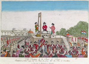 à l'aquarelle (faibles rouss. à 4 pl., pet. déch. marg. sans perte à 3 autres). Prise de la Bastille, le roi arrivant à l'Hôtel de ville, supplice de Louis XVI, exécution de Marie-Antoinette, peuple fermant l'Opéra, scènes des batailles de Fleurus, Jemappe, Neerwinden et Valmy. Par ou d'après J. David, F. Hoffbauer, Joliot, Imagerie d'Épinal (4), Prieur (5), Swebach e.a.