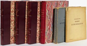 vol. demi-maroq. prune à coins, couv. cons.— (2). Catalogue des tableaux anciens. Aquarelles, dessins, gouaches, pastels anciens appartenant à Robert Schumann. Paris, Girard, 1934, br. (manque dans le haut du dos). Adjudications notées.— (3). Catalogue des objets d'art et d'ameublement du XVIIIe siècle. Tableaux anciens, sculptures, estampes anciennes du XVIIIe siècle et du début du XIXe siècle. Collection privée de Mme et M. Arnold Seligmann. Paris, Lahure, 1935, br. (pet. us.).— (4). Collection François Coty. Tableaux anciens, pastels, dessins, gouaches, objets d'art et d'Extrême- Orient, objets d'art et d'ameublement du XVIIe et XVIIIe siècle. Paris, Lahure, 1936, demi-maroq. bordeaux à coins, couv. cons., sous étui.