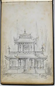 (Architecture) - Dessins - Lebens, E.- Cahier de c. 39 croquis architecturaux originaux : plans et élévations de grandes demeures, petits châteaux ou palais, prisons ou églises, un arc de triomphe, une entrée de tunnel et détails de sculptures...