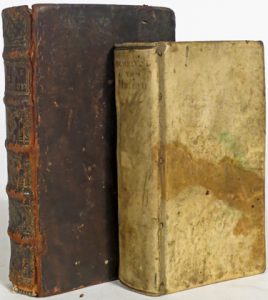 deel van de typografische titel weggeknipt, lichte watervlek in ondermarges, 2 bln achteraan i.p.v. vooraan gebonden, hs tafel achteraan ingekleefd). Eigentijdse Hollandse spitselband : perkament met omgezette randen, gladde rug met titel in pen (vervuild). Zeldzame eerste uitgave van deze reisgids van Lambert van den Bos (c. 1610-1698), conrector van de Latijnse school in Dordrecht, letterkundige en vertaler. Hij ontleende zjin tekst aan Italiaanse en Franse boeken. Het voorwerk bevat het gedicht "Afscheit van Italien" van Joost van den Vondel en een stuk uit "Florence" van P.C. Hooft. # NNBW IV-231/232 (vermeldt enkel de tweede druk van 1661); # niet in Tiele (idem). Bijgevoegd : BURNET, Gilbert.- Voyage de Suisse, d'Italie, et de quelques endroits d'Allemagne & de France [...]. Rotterdam, A. Acher, 1687, 2 stukken in 1 vol. in-12° eigentijdse lederen band (minimale wormgaatjes, sporadische vlekken, versleten band). # Tiele 217 (Ned. uitg. van 1687); # niet in Chadenat, Brunet en Graesse. ^ Rare édition originale de ce guide de voyage de l'Italie. Plein vélin de l'ép. (titre gravé et une partie du titre typographique manquants, mouill. claire marg., rel. défraîchie). Un ouvrage est joint.
