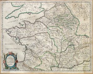 désencadrée). Carte d'après Ortelius figurant le nord-est de l'Europe, des Pyrénées et des Alpes jusqu'au Rhin, avec situation géographique des anciens peuples et des provinces romaines. Parue pour la première fois en 1634. # van der Krogt [4000H:2B].