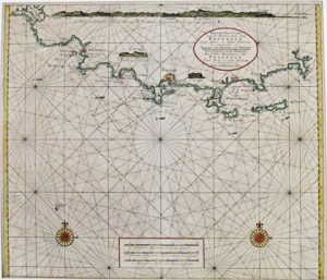 faibles mouill. dans les marges). Sous passe-partout. Carte avec profil du littoral. Présente dans la dernière édition du "Zeefakkel" mais parue séparément. # Koeman IV, 400[565].