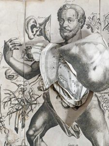 déch. renforcée, plis renforcés). Peut-être extraite de "La dissection anatomique du corps humain" publié à Amsterdam en 1634 par Cornelis Danckers ?