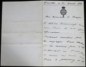 rencontrer : "Sachant combien peu les voyages Vous arrêtent je ne crains pas d'être indiscret en Vous priant de venir me voir dès que Vous le pourrez et de me faire le plaisir de descendre au Palais de Bruxelles [...]. Je serai heureux de pouvoir Vous redire de vive voix et la haute considération et la sincère amitié, de votre tout dévoué et affectionné Léopold".