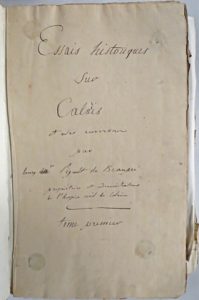 (France) - Ens. 2 ouvr. en 3 vol. - Pigault de Beaupré, Alexandre-Louis-Erard-Henri.- "Essais historiques sur Calais et ses environs". [Calais], 1818-[c. 1828]. 2 vol. pet. in-f° : [1]-280, 185-[3]-[51 bl.] pp. (lég. us.). Rel. de l'époque :...