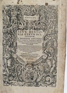(Belgique & Pays-Bas) - Annales sive Historiae rerum Belgicarum [...]. Francofurti ad Moenium [Frankfurt am Main], expensis Sigismundi Feyerabendii (apud Georgium Corvinum, impensis Sigismundii Feyrabendii), 1580. 2 parts in 1 vol. in-f° :...