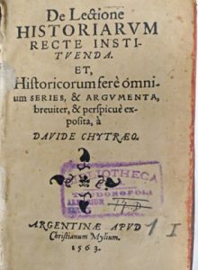 (Histoire) - Ens. 3 ouvr. du même auteur en 1 vol. - Chytraeus, David.- Collection of 3 works (two in first edition), 16th Century. In-8° (stamp on the 1st title-page, very slightly yellowed, some foxing mainly in 2d work, small marginal dampstain...