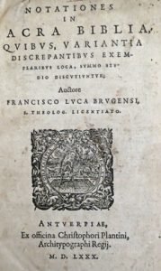 (Religion, Bible) - Lucas, François.- Notationes in Sacra Biblia, quibus, variantia discrepantibus exemplaribus loca, summo studio discutiuntur. Antverpiae, ex officina Christophori Plantini, 1580. In-4° : 467-[3] pp. (holes in the title-page, some...