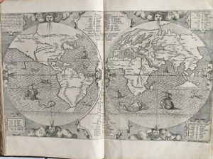(of 5) pl. (the view of the Temple is missing, small foxing, some small dampstains, several corners restored, some illustrations censored). 17th Century binding : calf, gilt stamped ribbed spine with title label (soiled, some parts restored, wormholes in spine). Important Plantinian edition of the new revision of the Vulgata by the theologians of the University of Leuven (1st ed. : 1574). Illustrated with 93 (of 94) copper-engravings : title within an architectural frame, 3 maps by Arias Montanus (Terra Israel, Terra Canaan, world-map), 1 plan of the Temple of Jerusalem, 7 full-pages and 81 in texto by Abraham de Bruyn, Jan Sadeler and Joannes Wiericx after Crispin van den Broeck and Pieter van der Borcht. The title-page, the 4 plates and the 7 full-pages had already served in the Polygot Bible (1 568-1 573). Copy with text on two columns embellished with initials. # Voet 690; # Adams B-1089; # BMC Dutch 22; # BT 452; # Poortman & Augusteijn 72/76; # not in Renier, Machiels, Soltész. ▲ Provenance : Cornil Levat (ex-libris); J.L. Stas of Tongeren, Belgium (handwritten note). ^ Édition plantinienne de la nouvelle révision de la Vulgate par les théologiens de Louvain. Illustrée d'1 titre gravé, de 3 cartes par Montanus (dont une mappemonde), du plan du Temple, de 7 pleines pages et 81 in texto dont 7 pleines pages. Plein veau du 17e s. (manque la vue du Temple, qqs défauts).