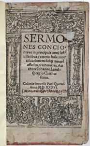 mentions d'app. mss). Encadrement du titre par Anton Woensam d'après Hans Holbein et qqs lettrines; # Adams H-119, # pas dans Machiels (éd. 1529).— (2). [LANSPERGIUS, Johannes Justus].- Sermones concionesue in praecipuis [...]. P. Quentel, 1536, demi- veau moderne à coins (1ers et derniers ff. défraîchis, rel. us.). Encadrement du titre par Anton Woensam, 3 in texto et plusieurs lettrines historiées; # pas dans Adams ni Machiels.— (3). HAYMON d'HALBERSTADT.- In D. Pauli epistolas omnes interpretatio, ad vetustissimorum exemplarium fidem quàm diligentissimè recognita [...]. Ex officina Eucharii Cervicorni, 1539, plein veau de l'ép. (1ers ff. défraîchis et détachés). Qqs lettrines historiées; # pas dans Adams ni Machiels.