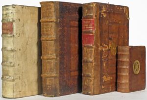 sacras literas. Excudebat Johannes Kempensis, 1542, in-f° plein vélin. # Pas dans Adams ni Machiels.— SURIUS, Laurentius.- Commentarius brevis rerum orbe gestarum ab anno salutis M.D. usque in annum M.D.LXXIII. Apud Gervinum Calenium et haeredes Joannis Quentelii, 1574, in-8° pleine basane, plat sup. avec armoiries dorées de la ville de Tournai, plat inf. avec l'Annonciation en médaillon. Édition en partie originale; ex-praemio de 1704; # Adams S-2100, # Machiels S-665.— RUPERT de Teutz.- Operum tomus secundus. Apud haeredes Arnoldi Birckmanni, 1577, in-f° plein veau (dos et mors refaits). # Pas dans Adams ni Machiels.— RIBERA, Francisco de.- In librum duodecim prophetarum commentarii. In officina Birckmannica, sumptibus Arnoldi Mylii, 1 599, in-f° plein veau sur ais de bois (dos et mors refaits). # Adams R-474, # Machiels P-161.