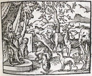 (pp. 15-18, 79-84, 103-106, 205-214, 505-506 and last 20 pp. missing, errors in pagination, some lvs shortly cut, small drawing with pen on title-page). Contemporary Dutch binding : vellum, flat spine with ink title (traces of ties, some stains, rebound in original binding and cover lvs renewed). First edition of the translation by the German humanistic poet Hartmann Schopper (1542-after 1595), illustrated with 46 (of 52) little woodcuts throughout the text engraved by Jost Amman (mostly monogrammed) from Virgil Solis' designs. Based on "Reinke de Vos", the famous late Middle Low German poem which first appeared at Lübeck in 1498, which was itself based on the enlarged version by Van Alchmer (Antwerp, 1487) going back to the old Flemish poem of the 13th Century. # Bibliotheca Reinardiana I-52/53; # Goossens, Jan.- Reynke, Reynaert und das Europ^ische Tierepos : gesammelte Aufs^tze. Münster, 1998, p. 265, note 37; # Bruel, Karl.- The Cambridge Reinaert fragments. Cambridge, University Press, 1927, pp. xv- xvi, xxii; # Machiels S-203; # Brunet IV-1222 (under Renard); # not in Adams nor in Matagne. ▲ Provenance : J.J. Olinger (ex-libris). ^ Édition originale de la traduction du poète humaniste allemand Schopper basée sur une éd. allemande de 1498 inspirée par une éd. anversois de 1487. Ill. de 46 (sur 52) petits bois par Jost Amman d'après Virgil Solis. Plein vélin de l'ép. (qqs pp. manquent, pet. défauts, rel. lég. tachetée).
