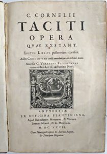 (Auteur de l'Antiquité) - Tacitus, Publius Cornelius.- Opera quae extant. Justus Lipsius postremùm recensuit. Additi Commentarii aucti emendatique ab ultimâ manu. Accessit C. Velleius Paterculus cum eiusdem Lipsi auctioribus notis. Antverpiae, ex...