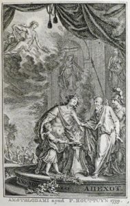 itemque Desiderii Erasmi Concinna expositio [...]. Addita quoque ad calcem Distichorum cuique nova paraphrasis]. Amstelaedami, apud Franciscum Houttuyn, 1759. 2 tomes en 1 vol. in-8° : front.-xvi-347-[1], viii-640-[25] pp.; 5 h.-t. (rousseurs, qqs pp. lég. jaunies, pp. collées à la fin de l'ex.). Rel. de l'époque : plein maroquin rouge, large dentelle et motif central réalisés aux petits fers dorés (chardons, chevrons, étoiles, poignée de tiroir...), dos à nerfs richement fleuronné doré et étiq. de cuir vert, tr. dorées (lég. traces d'us., rel. lég. frottée sur certains bords, étiq. et note ms. à la garde inf.). Distiques moraux de Caton (3e s. de notre ère) édités par Kônig de Kônigsfeld, illustrés par J. Fokke et accompagnés de traductions en grec, anglais, allemand, néerlandais et français. # Brunet I-1668; # Graesse II-82 (signale seulement 5 h.-t.); # pas dans Dibdin. • Jolie reliure hollandaise.