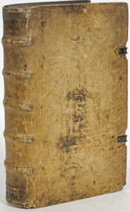 Philippi, ac Martini Veith, & Joannis Fratris haeredum, 1729. 2 tomes en 1 vol. inf : [10]-499, 503 pp.; 18 (sur 22) h.-t. (frontispice (?) manquant au t. I, ex. défraîchi, claires mouill. marg. mais plus larges in fine, piqûres, déch. sans manque à une carte, déch. restaurée à une autre...). Rel. de l'époque : pleine peau de truie sur ais de bois, plats estampés à froid de roulettes (fleuronnées ou figurant des portraits), filets et fleurons, dos à nerfs cernés de roul. à froid, tr. rouges, fermoirs en laiton (lég. us., mention d'app. ms. datée 1783 sur la garde sup.). Célèbre dictionnaire biblique de l'exégète bénédictin Calmet (1672-1757) traduit par Giovanni Domenico Mansi (1692 ?-1769). Illustré de 18 planches dont certaines dépliantes figurant des cartes (Terre promise, Jérusalem...), l'autel des encens, des phylactères, etc. L'édition originale parut en français en 1722, deux volumes de suppléments furent ajoutés en 1728 et la traduction en latin fut publiée pour la première fois en 1725. # Graesse II-20; # pas dans Brunet.