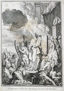 front. et 3 h.-t. (texte n.c., qqs rouss., pet. déchirure à 1 carte, mentions d'app. mss, pet. défauts). Rel. du 19e s. : demi-basane, plats de papier raciné, dos lisses avec roul. dorées et étiq. de cuir rouge (rel. lég. frottée, manque de papier au plat inf. du t. Iii, qqs coiffes abîmées, pet. défauts). Traduction de la Bible avec texte latin en regard. Belle édition ornée d'un frontispice par Sornique d'après de Sève, d'un bandeau en début de chaque volume par J.J. Pasquier et de 3 cartes dépliantes par G. Delahaye (sortie d'Égypte par le peuple d'Israël, Terre des Hébreux et des Israélites, Voyages des Saints Pierre et Paul). Louis de Carrières (1662-1717) offre un regard nouveau sur le sens et l'interprétation de la Bible. # Biogr. univ. VII-64; # pas dans Darlow et Moule, Renier, Brunet, Graesse.
