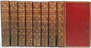 (Bible) - Bibliorum Sacrorum vulgatae versionis editio. Iussu christianissimi regis ad institutionem Serenissimi Delphini. Parisiis, excudebat Fr.Amb. Didot, 1785. 8 vol. in-8° (texte n.c., mouill. et pet. rouss. marg., qqs pp. lég. brunies, notes...