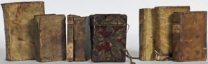 (Dévotion) - 8 ouvrages in-12° ou petit in-8°, plein vélin sauf 1 relié en cuir de Cordoue (défraîchis, us.). (1). [Recueil de prières et psaumes en néerlandais]. Antw., J. Vanghelen, [16e s.], rel. en cuir de Cordoue rouge, brun et or...
