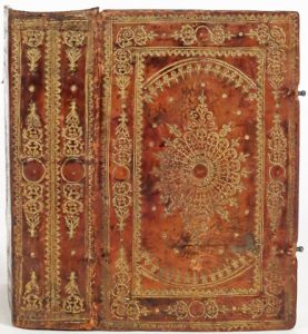 mouill. marginales, qqs-unes lég. plus grandes, mention d'app. ms. sur le titre). Rel. de l'époque : plein veau, joli décor aux petits fers dorés sur les plats avec motif central serti de cadres, dos fleuronné doré, filets sur les remplis, tr. dorées, fermoirs en cuir et métal (mors, coupes et pet. parties des plat. lég. frottés, pet. manque sur le plat sup.). Deuxième édition (éd. orig. : 1629) de ce recueil d'emblèmes sur le coeur par l'abbé réformateur d'Afflighem Van Haeften (Utrecht c. 1588-1648 Spa). Illustrée d'un titre et 55 figures numérotées à pleine page gravés sur cuivre par Boetius Adams Bolswert (fig. comptées dans la pagination mais aux versos blancs), chacune accompagnée d'une légende, d'une référence à la bible et d'un distique gravés. # Funck 327; # Landwehr, L.C., 268; # Praz 361 ; # BCNI n° 8093; # Biogr. nat. VIII- 598/600. ▲ Provenance : comte Alphonse O'Sullivan de Grass de Séovaud (1798-1866), diplomate (ex-libris armorié à la devise "Modestia victrix"). • Très jolie reliure aux petits fers, strictement de l'époque, avec jolis fleuron central, cadres et roulettes. Rare reliure par l'usage de demi-arcs de cercle cernant le motif central, l'usage d'un petit fer rond ponctué d'un point central et le décor en long doublé sur le dos, ce qui mériterait une recherche sur l'atelier qui l'a produite.