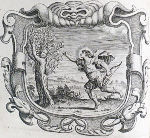 1640. In-4° : [8]-712-[7] pp. (titel kort afgesneden en gedoubleerd, laatste blad afgesneden en op schutblad gekleefd, bleke vochtvlekken pp. 39-48, kleine bruine vlekjes in enkele marges). Eigentijdse band : kalfsleder, rug met ribben en titelschild (slijtage aan scharnieren, platranden en -hoeken). Eerste uitgave van de vertaling door Poirters en Uwens van dit feest- of jubileumboek van de Vlaamse provincie der jezuïten naar de gelijktijdig verschenen Latijnse uitgave met identieke illustraties : 1 allegorische titel door Michael Natalis naar Abraham van Diepenbeke, 1 volbladgravure en 104 emblematische verbeeldingen in gevarieerde cartouches door Cornelius Galle. # Funck 341 ; # Landwehr, L.C., 11; # Praz 380 (telt slechts 102 vignetten); # De Backer- Sommervogel I-1626. Gekleefd op binnenzijde van achterplat : Pratycke om de zieltiens in't vaghevier behulpsamich te wesen. Antwerpen, Jacob Mesens, 1692, in-8°, 15 pp. Titelvignet en 3 koperprenten in de tekst. ▲ Herkomst : Hélène de Spot (ex-libris). ^ Édition originale de la traduction parue à l'occasion du centenaire de la fondation de l'ordre des jésuites. Un des plus beaux livres d'emblèmes de l'époque, orné d'1 titre allégorique, d'1 à pleine page et de 104 vignettes par C. Galle, toutes serties de beaux cartouches variés. Un petit ouvrage de dévotion illustré de 3 in texto est collé au contreplat de l'ex. Plein veau de l'ép. (titre rogné et doublé, dern. feuillet de texte rogné et collé sur garde libre, faibles mouill. marg. aux pp. 39-48, faibles us. aux mors et bords des plats).