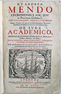 (Jesuitica & Pédagogie) - Mendo, Andres.- De iure academico, selectae quaestiones theologicae, morales, iuridice, historicae, et politicae, de Academiis, magistratibus, collegiis, professoribus, candidatis, & scholasticis [...]. Lugduni [Lyon],...