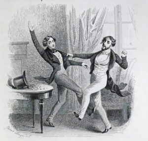 croisés, roul. fleuronnée dorée cernant les plats, dos lisse fleuronné doré (coins, mors, coupes +/- frottés avec manque partiel de papier au mors inf., coiffes faibles). Édition originale de ce premier tome des "Études sociales" illustré de 100 vignettes in texto gravées sur acier par Gavarni, Janet-Lange, Maeckl, etc., et de quelques jeux typographiques (pp. 46-47). Premier tirage du texte. Notre ex. ne contient pas de couverture. # Carteret I-60
