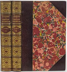 Flaubert, Gustave.- L' Éducation sentimentale. Histoire d'un jeune homme. Paris, Michel Lévy, 1870. 2 vol. gr. in-8°. Relié par Bernasconi : demi-maroquin brun foncé à coins, plats de papier marbré, dos à nerfs et caissons joliment...