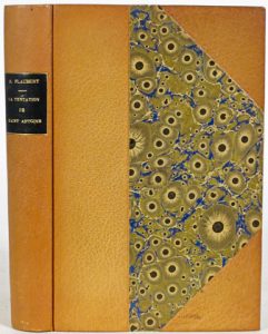 Ens. 2 ouvr. du même auteur - Flaubert, Gustave.- La Tentation de Saint Antoine. Paris, Charpentier, 1874. In-8°. Rel. moderne : bradel demi-maroquin ocre à coins, double filet à froid cernant les plats de papier marbré, dos lisse avec étiq. de...
