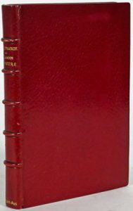 remplis, gardes et doubles gardes de papier marbré, tête dorée, grands témoins cons., couv. orange et dos cons. (très lég. us. sur les plats dues à un étui disparu, un nerf frotté). Édition originale de cette réunion de 75 petits textes ou aphorismes, de quelques lignes à plusieurs pages, sur divers sujets : religion, amour, droit des femmes d'exercer leurs talents dans des domaines réservés aux hommes, mystère de la vie, peinture... Tirage limité à seulement 70 ex. num., un des 20 de tête sur Japon impérial (n° 5). # Talvart VI-142. ▲ Provenance : Librairie Tulkens (étiq.).
