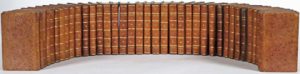 par trimestre, incomplet du 4e trim. de l'année 1815, ff. lég. brunis, rousseurs, lég. moisissures à qqs vol.). Rel. de l'époque : demi-basane mouchetée, plats de papier moucheté, dos lisses fleuronnés dorés, tr. jaspées de rouge et bleu (rel. lég. frottée et us., galeries et trous de vers à qqs dos, coupes et coins lég. émoussés). Édition originale de ce journal gastronomique mensuel devenu à partir de janvier 1808 "L'épicurien français ou Les dîners du Caveau moderne". Il contient des pièces de vers, historiettes, énigmes, chansons, etc., relatives à l'art de la table mais aussi à la beauté des femmes. La publication fut entreprise par la "Société des Épicuriens", rattachée à la "Société du Caveau" (1729), célèbre goguette parisienne réunissant les hommes lettrés de l'époque, et continuée par la "Société du Caveau moderne". L'un des rédacteur principaux, Grimod de la Reynière (1758-1837), un avocat, critique, journaliste français, est considéré comme l'un des fondateurs de la critique gastronomique occidentale moderne. Il est célèbre pour ses repas gargantuesques à thèmes et pour son ouvrage "L'Almanach des Gourmands", ancêtre des guides gastronomiques.