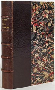 France, Anatole.- Sur la pierre blanche. Paris, Calmann-Lévy, [2 février 1905 (achevé d'imprimer incorrect à la date du 11- 1903)]. In-12°. Relié par Thierry : demi-maroquin brun, dos à nerfs, couv. orange et dos cons. (dos passé et lég....