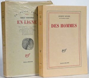 Ens. 2 ouvr. - Kessel, Joseph.- Des hommes. (Paris), Gallimard, nrf, (23 mars 1972). In-8°. Broché (état de neuf, non coupé). Édition originale tirée à 140 ex. (dont 50 réservés à l'auteur); parmi les 90 du tirage num. mis dans le commerce,...