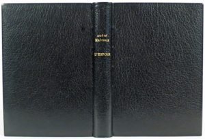 Malraux, André.- L' Espoir. Roman. Paris, Gallimard, nrf, (15 décembre 1937). In-12°. Relié par Jean-Paul Miguet : plein maroquin noir janséniste, dos lisse, doublures de veau rouge serti d'un filet doré et de maroq. noir, gardes de même veau...