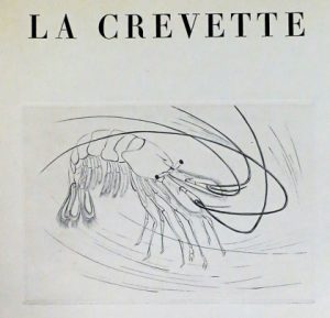 Ponge, Francis.- La Crevette dans tous ses états. Burins de Gérard Vulliamy. (Paris), Vrille, (1er juillet 1948). In-8° (p. de la table des matières lég. brunie). En ff., sous couverture (brunie). Sous chemise et étui (cassé) d'éd. Édition...