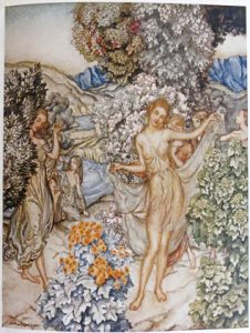 Shakespeare.- The Tempest. Illustrated by Arthur Rackham. London, William Heineman; New York, Doubleday, (1926). In-4°; 20 pl. Publisher's binding : grey cloth, gilt title and naiad on the upper board, flat spine with gilt title and stamp. First...