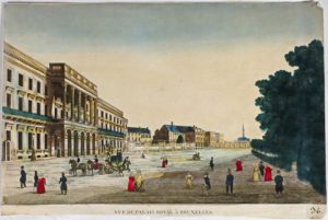 beffroi), Bruxelles (vue optique du Palais royal). Joint : (1). La digue percée à Coevorden [Hollande].— (2). Vue de port avec navires de commerce.