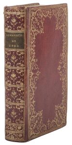 [ALMANACH]. ALMANACH ROYAL, année bissextile M. DCC. LXXX. Paris : d’Houry, 1780. — In-8, 656 pp. Maroquin rouge, plats ornés d’un décor à la dentelle dans un encadrement composé d’un double filet et d’une roulette à dents de rat,...