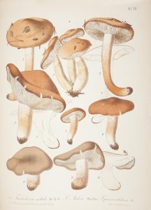 marron, dos lisse (reliure moderne). Volbracht, MykoLibri, 2006, n° 61, p. 40. Édition originale recherchée de ce remarquable ouvrage de documentation mycologique, illustrée de 69 planches en chromolithographie en couleurs d’après non seulement les dessins de Barla mais surtout de Vincent Fossat son fidèle et talentueux collaborateur. Il parut en 7 fascicules entre 1888 et 1892. Exemplaire parfaitement conservé.