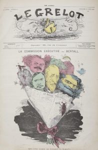 satirique républicain et anti-communard Le Grelot rédigé par Arnold Mortier. Ces 716 numéros couvrent les 14 premières années de l’hebdomadaire, de 1871 à 1884. Les principaux illustrateurs, dont les compositions ornent la première page ou parfois les deux pages centrales, étaient Bertall, Alfred Le Petit, Henri Demare, Bernay, Boussa, Hector Moloch et Pépin. On joint, dans un volume à part, le numéro 768 du 27 décembre 1885, les années 1886 à 1890 (n° 769 à 1028, manque le 1029 du 28 décembre 1890), et le n° 1030 du 4 janvier 1891, ainsi que les années complètes 1893-1894 (n° 1134 à 1238) et 1898-1899 (n° 1343 à 1445). On joint également un double des années 1871, 1872, 1873, 1874 et 1879 et des numéros de 1876, 1877 et 1878. L’ensemble contient donc 21 années complètes et une année où il ne manque que le dernier numéro (1890). Quelques usures aux reliures. Le volume en demi-toile des années 1886 à 1890 est dérelié. Déchirures sans manque à quelques numéros, sans gravité.