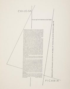 PICABIA (Francis). Chi-lo-sa. [Alès : PAB, 1950]. — In-4, (9 ff. premier blanc), couverture illustrée. En feuilles. Édition originale très rare tirée à seulement 100 exemplaires, de ce recueil de poèmes et pensées de Francis Picabia...